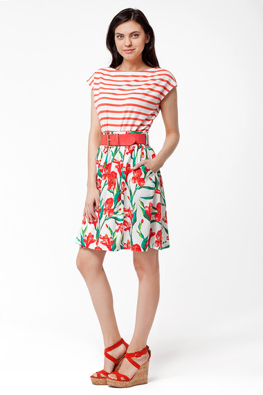 Летняя юбка с ярким цветочным принтом. Модель длиной до колен, с карманами по бокам, и ременем в комплекте!
