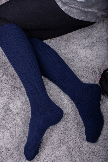 Фото товара 21527, синие длинные женские гольфы из ангоры